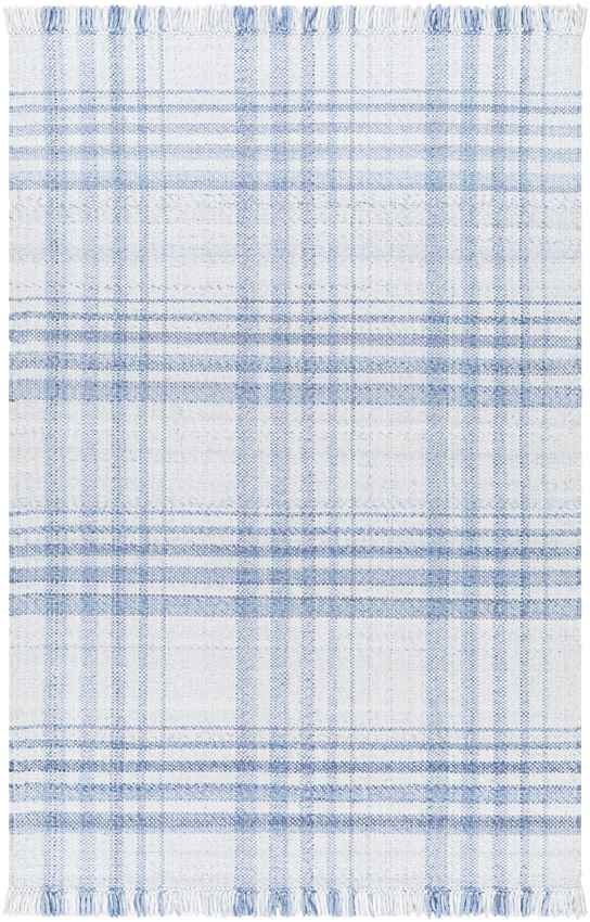 Elevate your home with the Alessia Cottage Sky Blue/Ivory Area Rug, a perfect blend of charm and sustainability. Showcasing a timeless plaid design in soft sky blue and ivory hues, this hand-woven masterpiece infuses any room with a fresh, inviting ambiance. Expertly crafted in India from 100% recycled PET yarn, it offers an eco-conscious and durable solution for modern living. Featuring a sleek no-pile construction and elegant fringed trim, this rug combines effortless style with practical functionality, making it a standout centerpiece for your home decor.