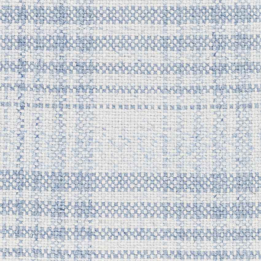 The Alessia Cottage Sky Blue/Ivory Area Rug is designed to withstand the rigors of daily life while maintaining its beauty. Its no-pile construction ensures that dirt, spills, and pet hair are easy to clean, making it a practical choice for busy homes. The recycled PET yarn adds durability without compromising on softness, ensuring that your rug stays vibrant and intact for years to come.