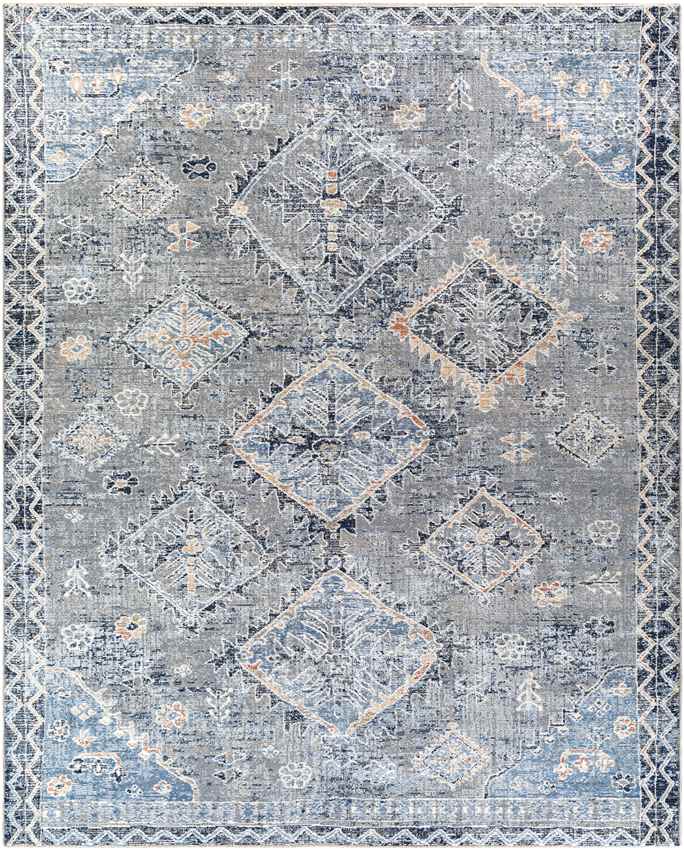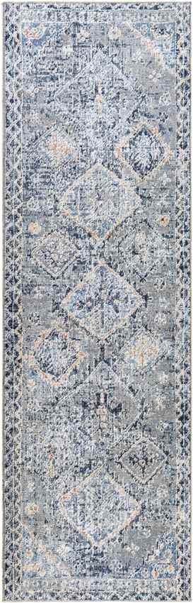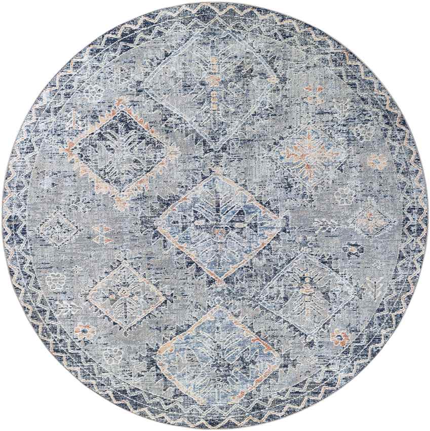 Discover the Allen Traditional Navy Area Rug, where timeless sophistication meets everyday resilience. This exquisite area rug features a deep and rich color palette, showcasing shades of navy, denim, gray, rust, light beige, and cream. It's the perfect embodiment of traditional charm fused with modern functionality, ideal for enhancing any space in your home.