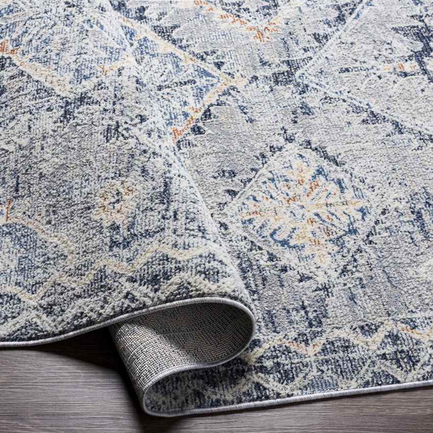 Designed to withstand the rigors of daily foot traffic, the Allen Traditional Navy Area Rug retains its elegance through continual use. The durable polyester fibers are specifically chosen for their resistance to wear and fading, making this rug a practical choice for spaces like living rooms, dining areas, and bedrooms. Its medium pile height offers a plush feeling underfoot, ensuring a comfortable yet durable surface.
