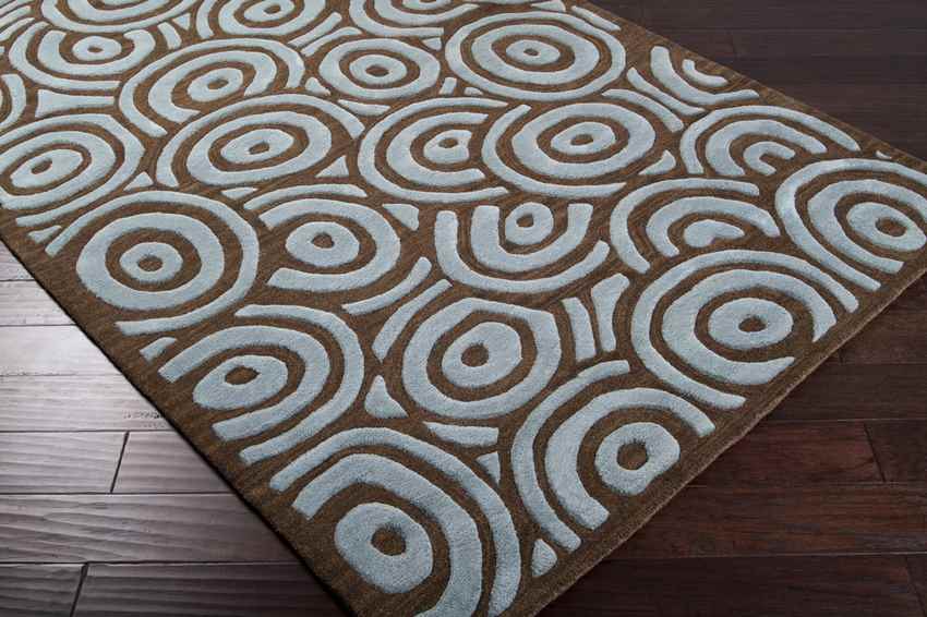 The Anvik Modern Brown/Spa Blue Area Rug is hand-tufted from premium New Zealand wool, known for its softness, durability, and resilience. Wool is naturally stain-resistant, making this rug a great option for homes with children and pets. Its medium-pile construction provides a comfortable feel underfoot while maintaining the rug's ability to stand up to high traffic. Whether in a busy entryway, under the dining table, or in a frequently used living room, this rug is built to last and retain its luxurious appearance.