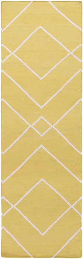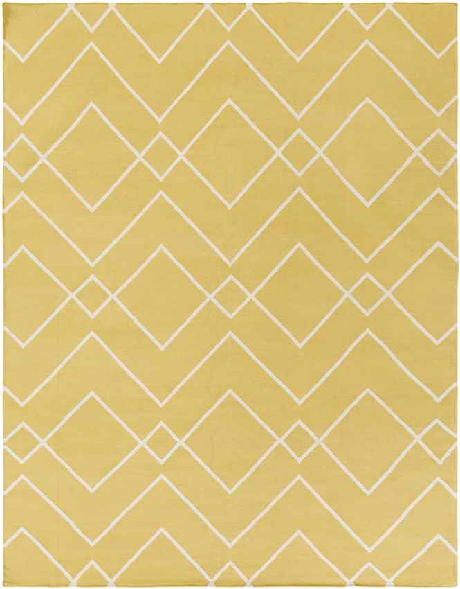 Woven from breathable, lightweight cotton, this Arvin Modern White Gold Area Rug lies flat without curling or bunching. Its no-pile design makes it ideal for rooms where smooth transitions and easy movement are essential. Add it under a dining table, workspace, or even layered over a jute rug for added texture.
