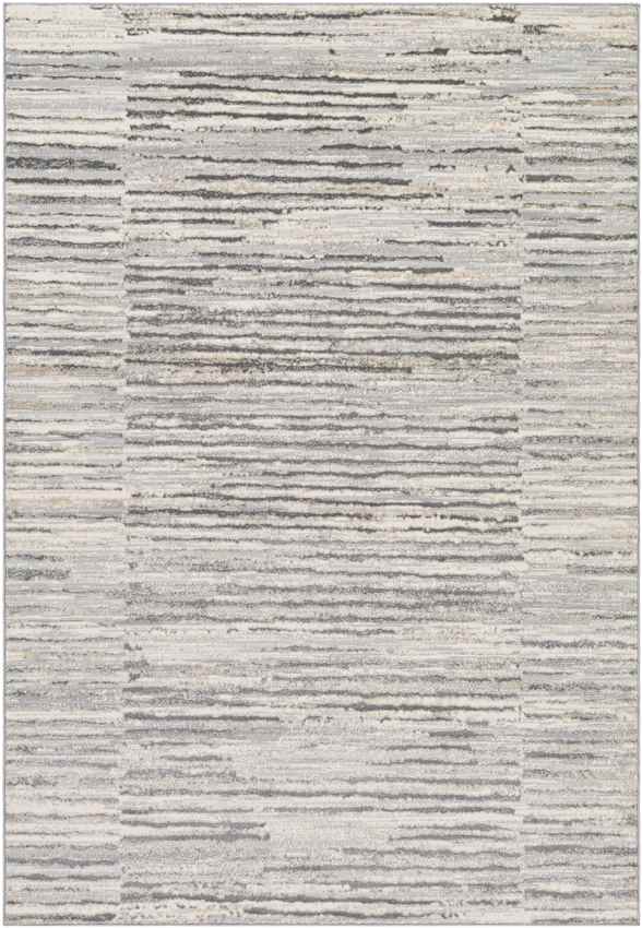 Transform your living space with the Asch Modern Grey Area Rug, a stunning fusion of contemporary design and enduring comfort. This machine-woven masterpiece, originating from Turkey, showcases a refined palette of light grey, cream, medium grey, and charcoal, intricately arranged in a captivating horizontal striped pattern. The blend of high-quality polypropylene and polyester fibers results in a medium-pile rug that offers both luxurious texture and exceptional durability, making it the perfect addition to any modern home.