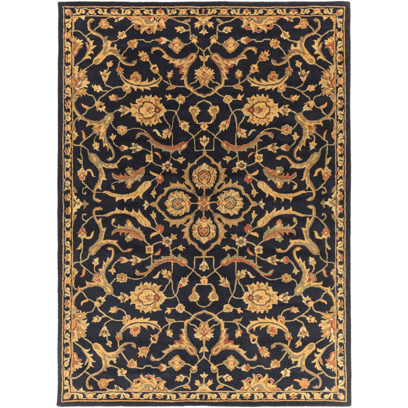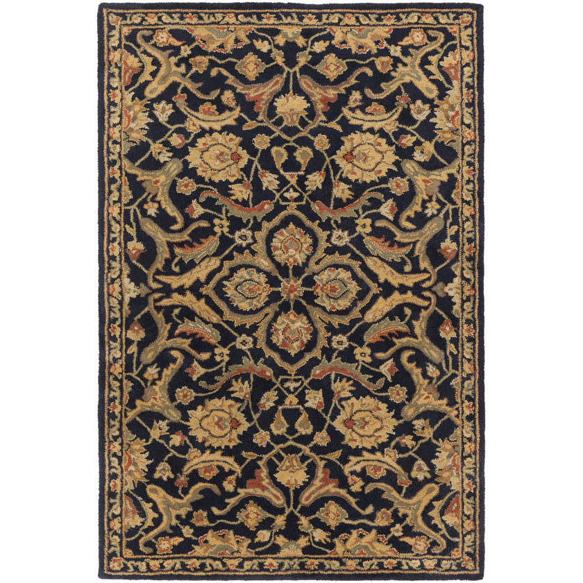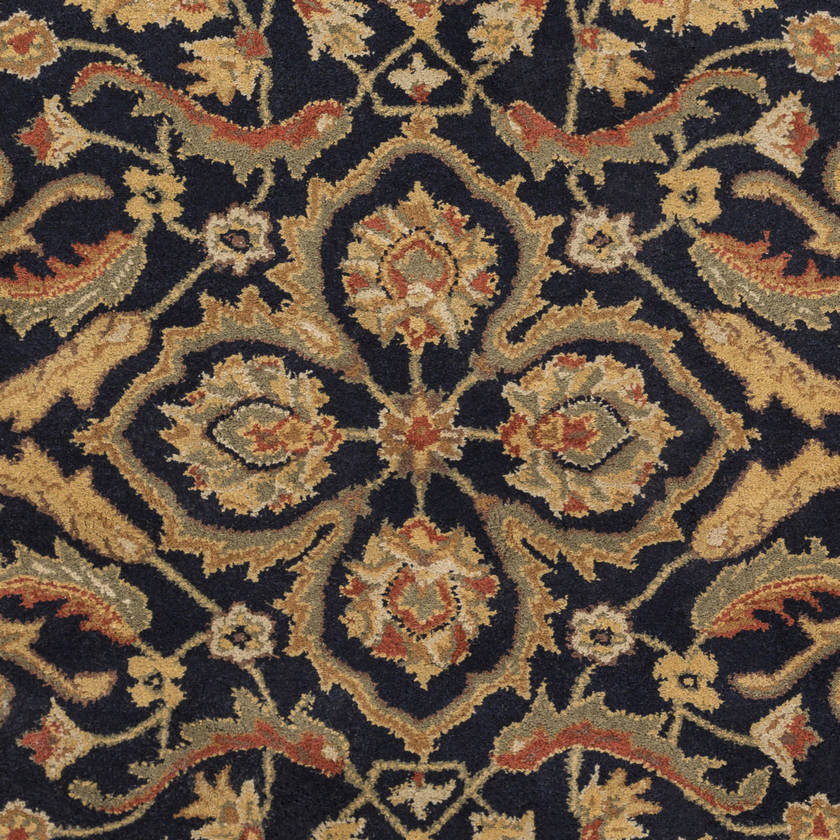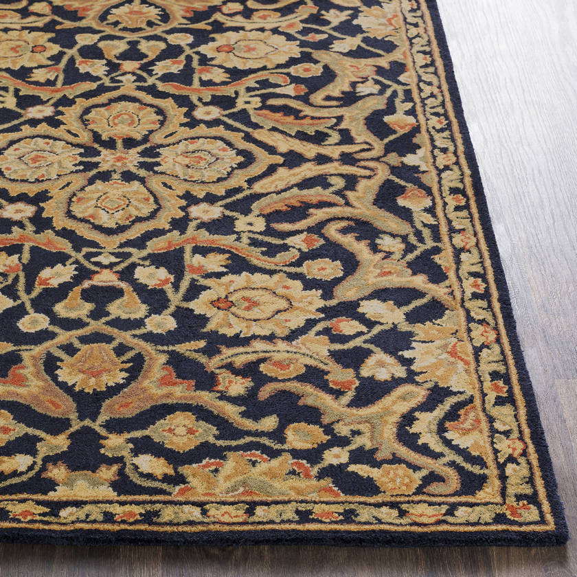 The Bearden Traditional Navy Area Rug features a timeless design thats rich in history and style. Its navy background serves as a sophisticated foundation, with warm accents of mustard, rust, olive, and metallic gold, creating a harmonious contrast. This color combination adds a sense of regal beauty and elegance to any room. Whether placed in a traditional home or a more contemporary space, this rugs classic design will elevate your dcor with its refined aesthetic.