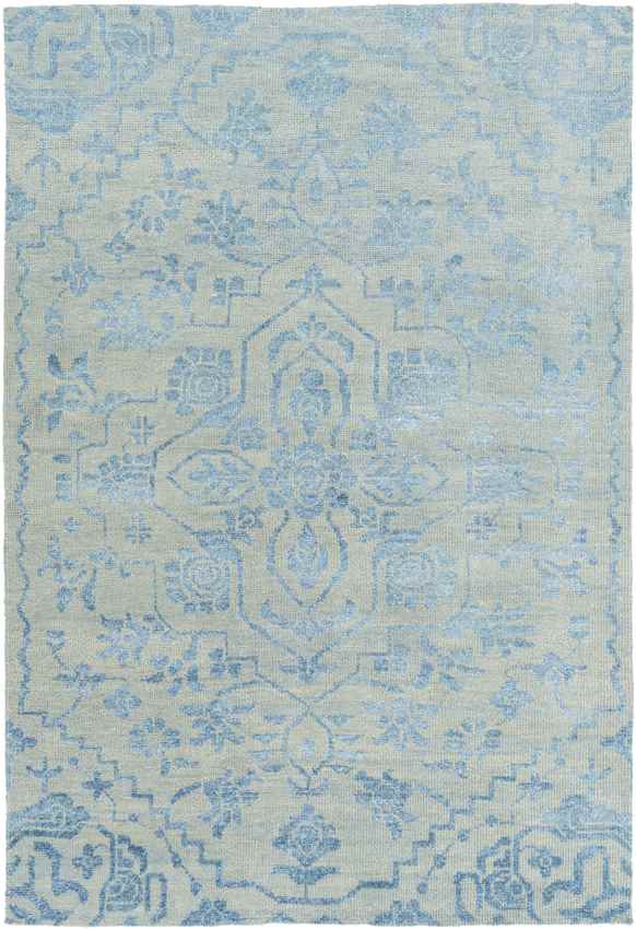 Product Specifications: Colors: Light Blue, Blue Material: 60% Wool, 40% Viscose Origin: India Construction: Hand Knotted Pile Type: Low Pile, 0.08 inches Please Note: The image we display has the most accurate color possible. Due to differences in computer monitors, we cannot be responsible for variations in color between the...