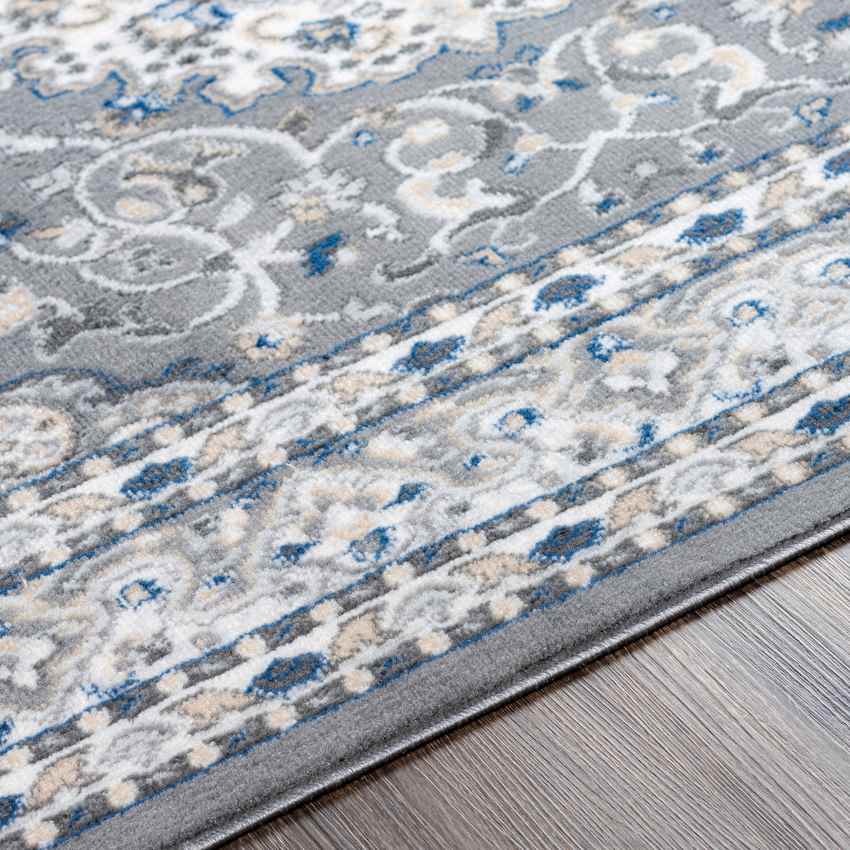 The Belvert Traditional Charcoal, Gray, Navy, Tan, Light Gray, Cream Area Rug comes in a tatseful palette of grays and is clad with traditional patterns that have the most intricate details. It gives off an air of elegance and is sure to fit the taste of the old soul in you. If its beauty is not enough to bring this piece of art to your home, another thing about this rug is its stain resistance. You will not have to worry about keeping your rug pristine.