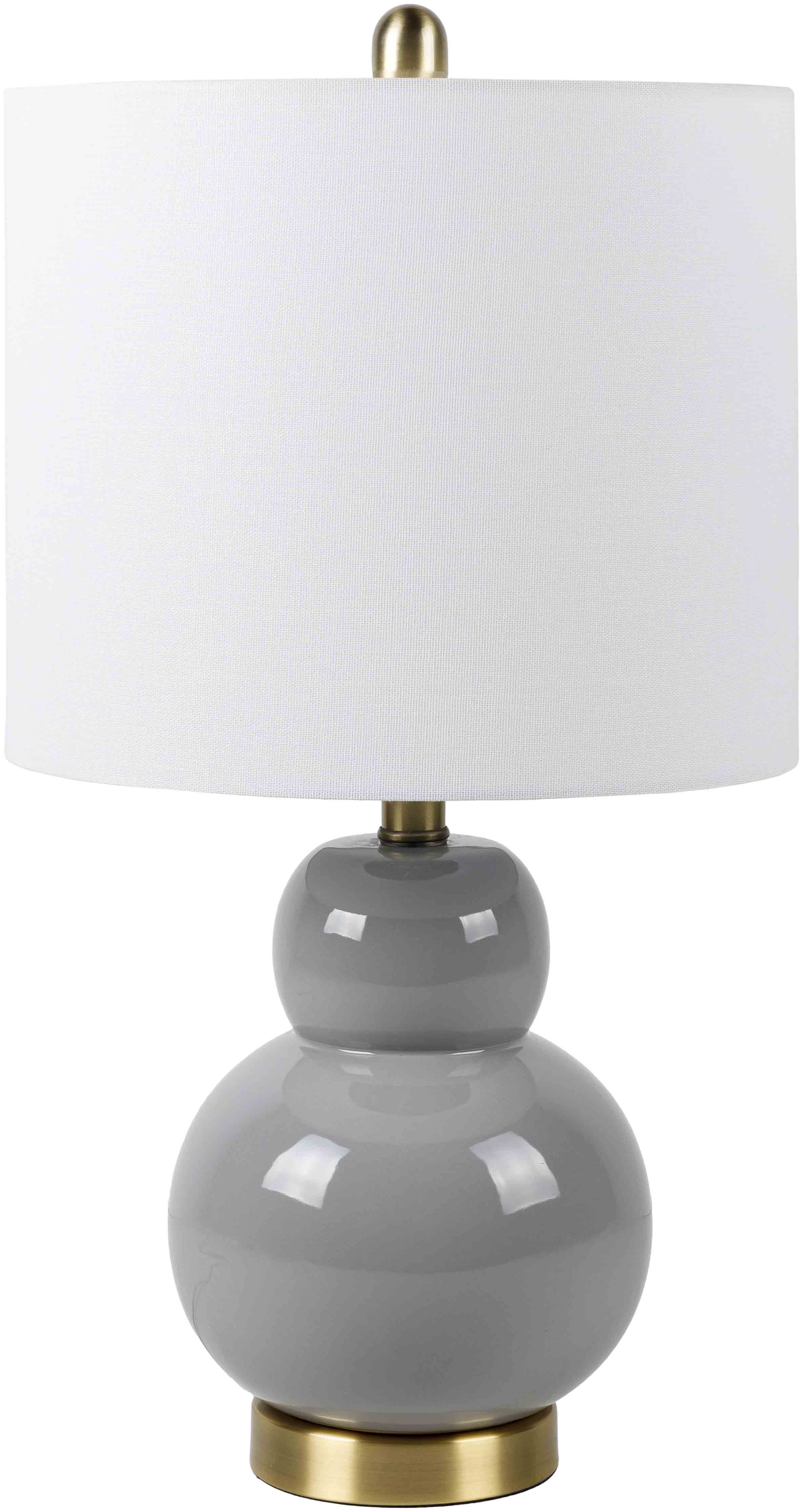 Product Specifications: Material: Linen, Polyester, Ceramic, Iron Style: Made in China Gray Glazed Ceramic Body White Linen Shade Metallic Iron Base Iron Finial Cord Length: 6' Switch Type: On/Off Number of bulbs: 1 E-26/60 W UL CUL Certified Please Note: The image we display has the most accurate color possible....