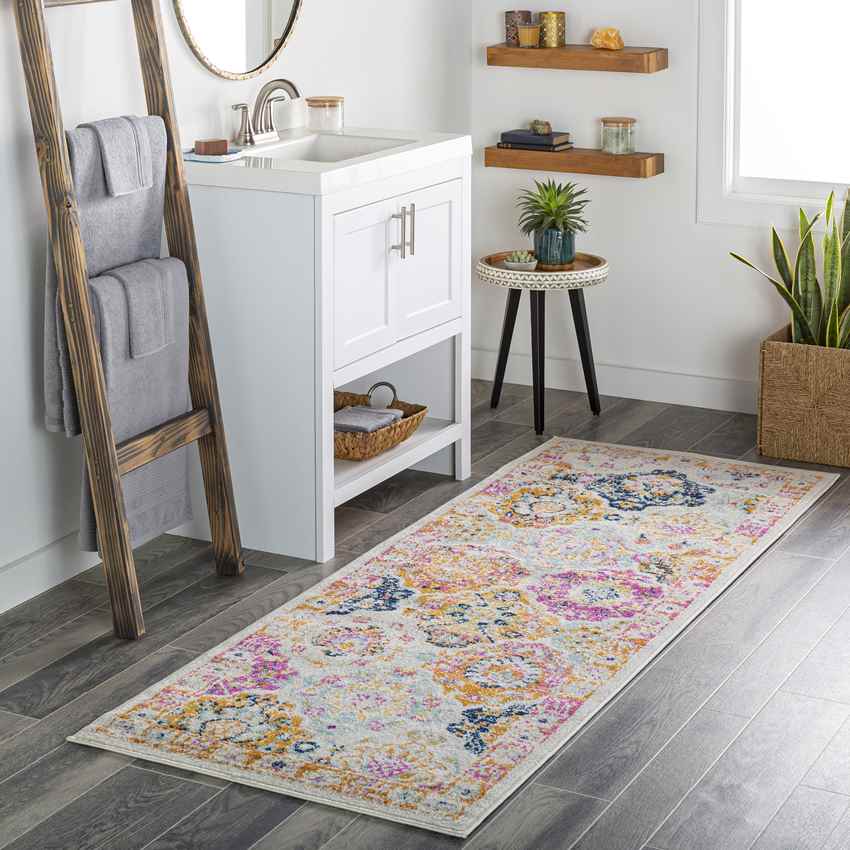 The Boslust Traditional Saffron Area Rug is sure to be a conversation-starter. You cannot help but stare at its intricate design. You could get lost just exploring every aspect of it with your eyes. The details and shapes all contribute to its overall look of sophistication and luxury. What make the rug even more eye-catching is its color palette. You can see how well the gorgeous colors work together. If a rugs beauty is not enough to convince you of its notability, another feature of this area rug is that it is stain-resistant. This means that it is a safe rug to have for homes with children and/or pets.
