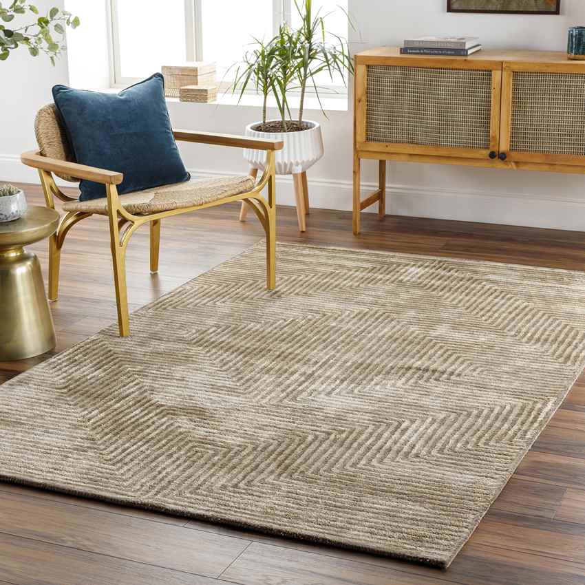 Luxurious and hypnotizing Calais Modern Taupe Area Rug is a smart looking clean area rug with a pattern of zigzag inspired lines. Its charismatic layout allows it to be a perfect cut for modern themes or decors. This splendid piece can be beautifully matched with black and white compositions.