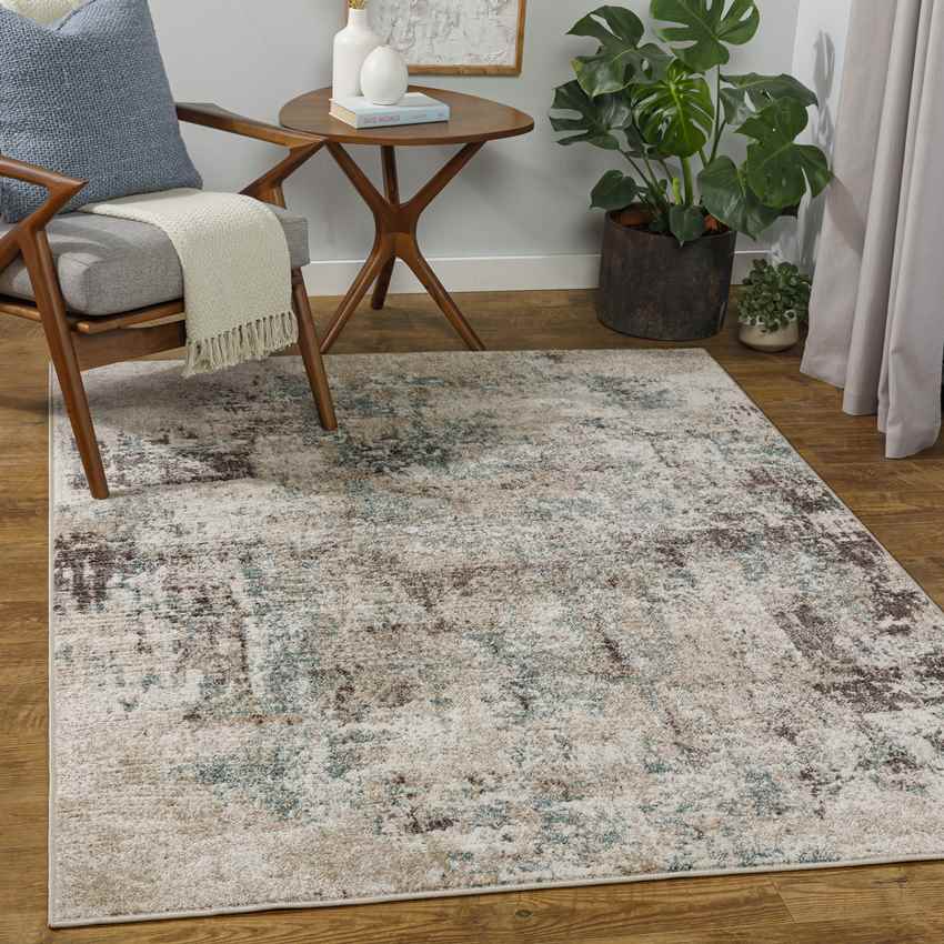 Elevate your home with the Downers Grove Traditional Light Brown Area Rug, a masterpiece of vintage charm and modern durability. Featuring a beautifully intricate design in teal, medium brown, tan, light beige, and cream, this rug blends warm earth tones with subtle pops of color to create an inviting and sophisticated ambiance. Perfect for living rooms, bedrooms, and dining areas, this rug not only enhances the aesthetic of your space but also provides stain resistance and kid-and-pet-friendly durability. Machine-woven in Turkey from 100% polypropylene, it offers a soft medium-pile texture, ensuring both style and comfort underfoot.