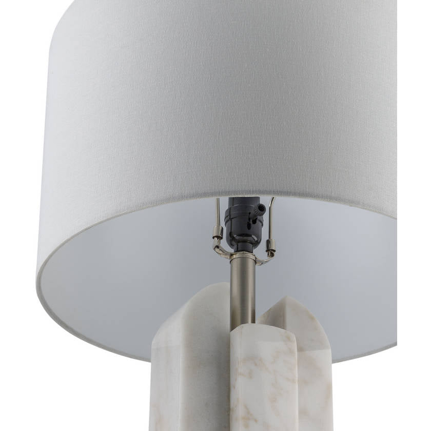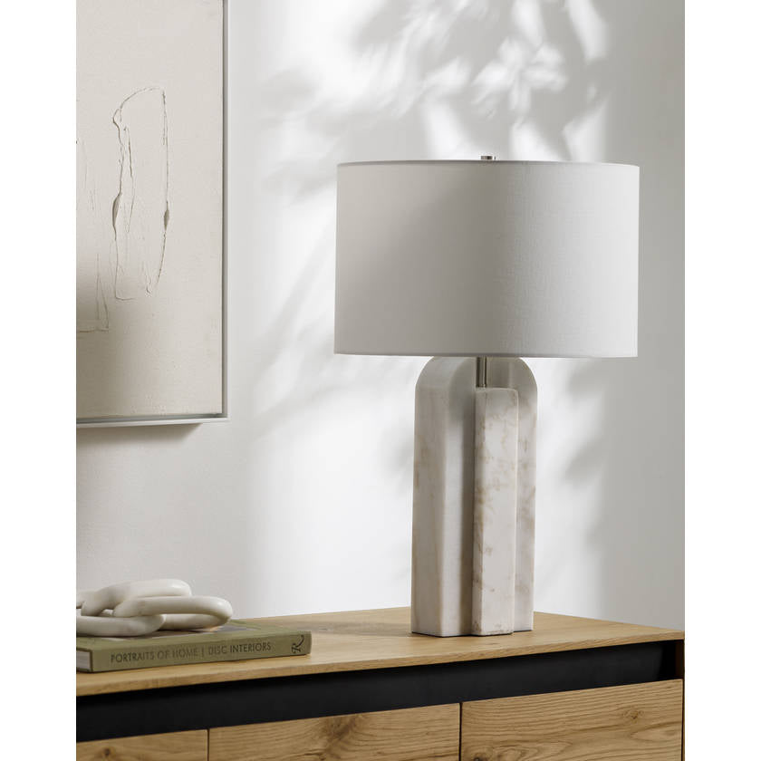 Experience the perfect blend of functional lighting and stunning design with our Elspeth Accent Table Lamp. Inspired by Art Deco Modern aesthetics, this lamp features a sleek body crafted from genuine marble that exudes sophistication and luxury. The outside shade is made of linen, diffusing soft light to create a warm and inviting ambiance, while the inside boasts a robust polyester construction for durability. Topped off with an iron finial that adds an elegant touch to its overall look. Standing at 26 inches tall, this lamp perfectly illuminates your desk or bedside table without overwhelming your space. Maintaining its beauty is simple - just wipe it clean with a dry cloth to keep it looking as stunning as ever. Note: Harsh cleaners should be avoided to preserve the finish.
