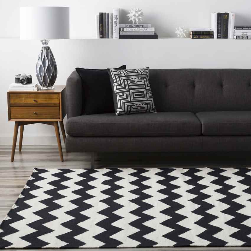 Emanuel Modern Jet Black/Winter White Area Rug is a sharp look that is designed to bring brilliance to your lives. Make a change and opt for zigzags today!
