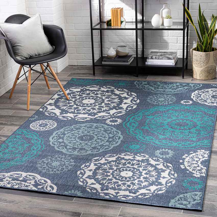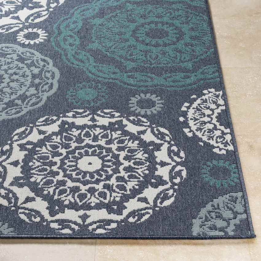 The Ethan Cottage Charcoal Area Rug transforms any space with its enchanting Mandala-inspired design. The intricate patterns, coupled with a soothing color palette of navy, teal, pale blue, and white, create an elegant yet inviting atmosphere. Perfectly suited for country cottage, bohemian, or eclectic styles, this rug is a versatile addition that adds a timeless aesthetic to your decor.
