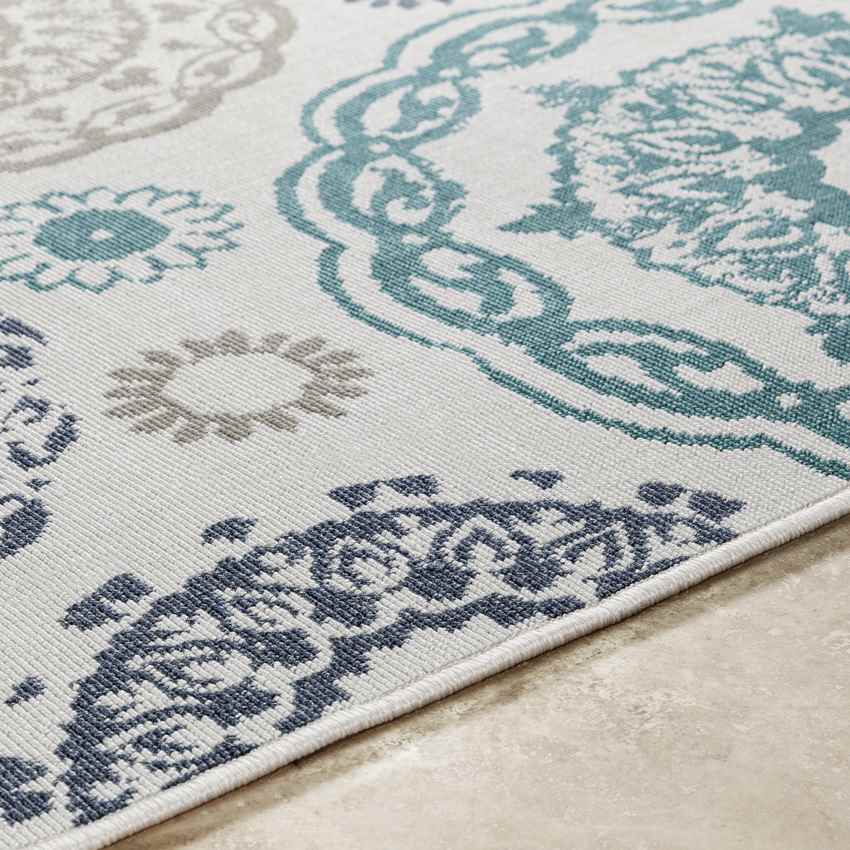 Why settle for a rug thats confined to one space? The Ethan Cottage Teal Area Rug offers the flexibility to enhance both indoor and outdoor areas. Its vibrant medallion pattern adds a dynamic focal point to any room, while its weather-resistant construction ensures it performs beautifully on patios, decks, or other outdoor settings. Wherever you choose to use it, this rug promises to elevate your decor effortlessly.