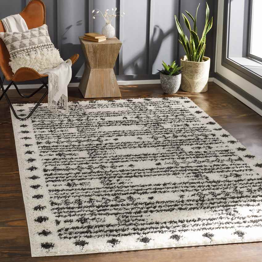 Product Features: Stain Resistant Kid and Pet-Friendly Product Specifications: Colors: Black, Cream Material: 100% Polypropylene Origin: Turkey Construction: Machine Woven Pile Type: Plush Pile, 1.10 inches Please Note: The image we display has the most accurate color possible. Due to differences in computer monitors, we cannot be responsible for variations...