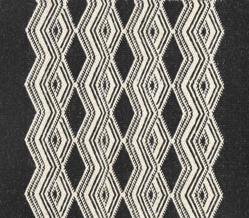 The Fazeley Global Black Area Rug is a stunning blend of hypnotic geometric patterns and monochrome sophistication. Its continuing zigzag design creates a visually captivating centerpiece, perfect for fans of clean lines and sharp aesthetics. Hand-woven in India from 100% wool, this no-pile rug combines exceptional craftsmanship with contemporary charm, making it a brilliant addition to your home decor.