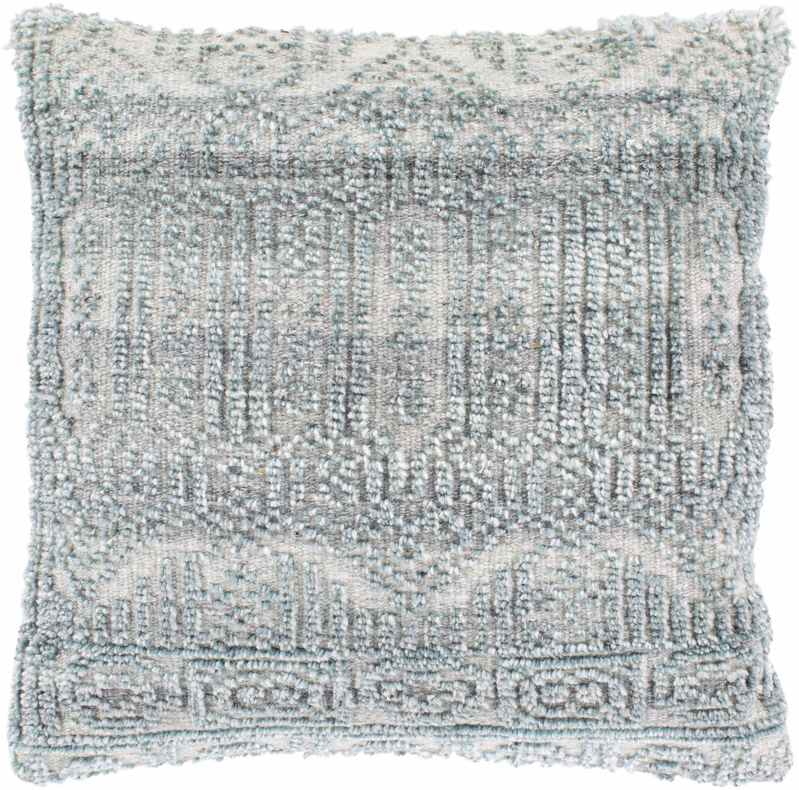Product Specifications: Colors: Cream, Seafoam, Teal, Charcoal, White Material: Front: 65% Rayon,28% Wool,7% Cotton, Back: 100% Cotton Origin: India Construction: Hand Knotted Style: Global Please Note: The image we display has the most accurate color possible. Due to differences in computer monitors, we cannot be responsible for variations in color...
