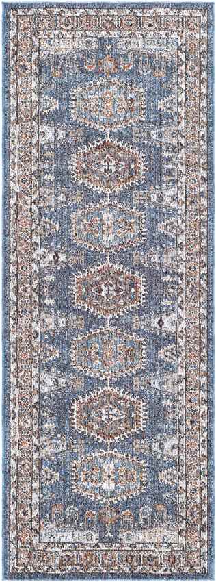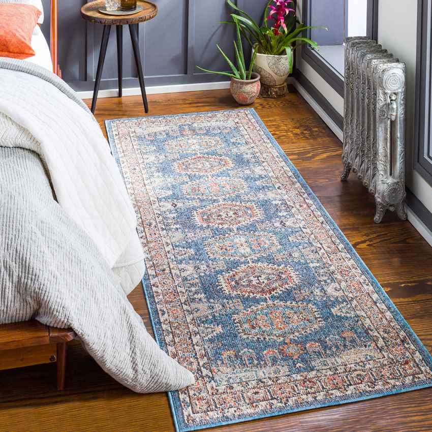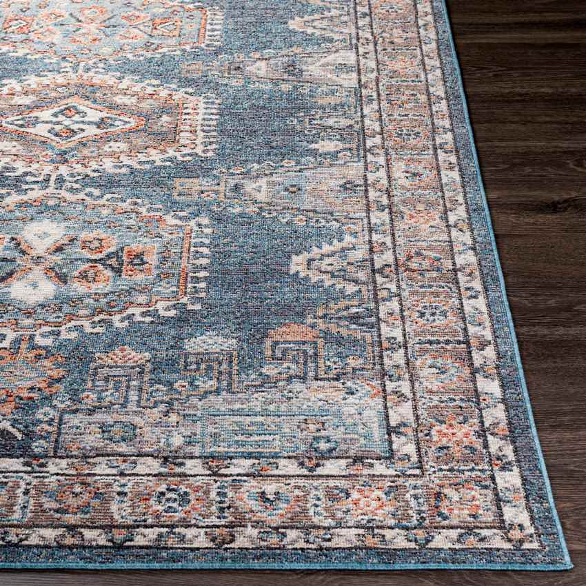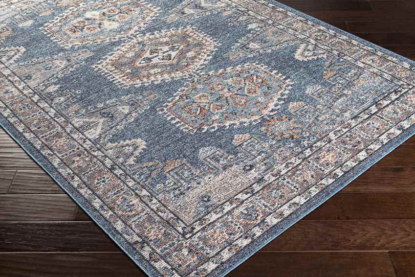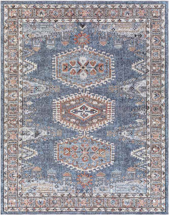 Infuse your home with timeless charm and practicality with the Grave Traditional Navy Area Rug. This Persian-inspired masterpiece boasts an intricate pattern in shades of navy, ink blue, rust, light beige, and gray, creating a rich, authentic design that adds warmth and character to any space. Perfectly blending vintage aesthetics with modern functionality, this rug is an exceptional choice for those who seek both style and durability.