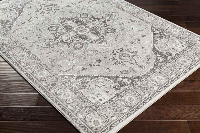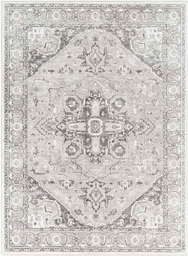 Enhance your home with the Griswold Traditional Gray Area Rug, a perfect balance of timeless sophistication and modern practicality. Featuring an intricate traditional design in a refined palette of ivory, charcoal, light beige, light gray, and medium gray, this rug adds depth and character to any space. Expertly machine woven in Turkey from 100% polyester, it offers both durability and a soft, inviting texture. Whether you're styling a grand living room, an elegant dining area, or a cozy bedroom, this rug serves as the ideal foundation for your home decor.