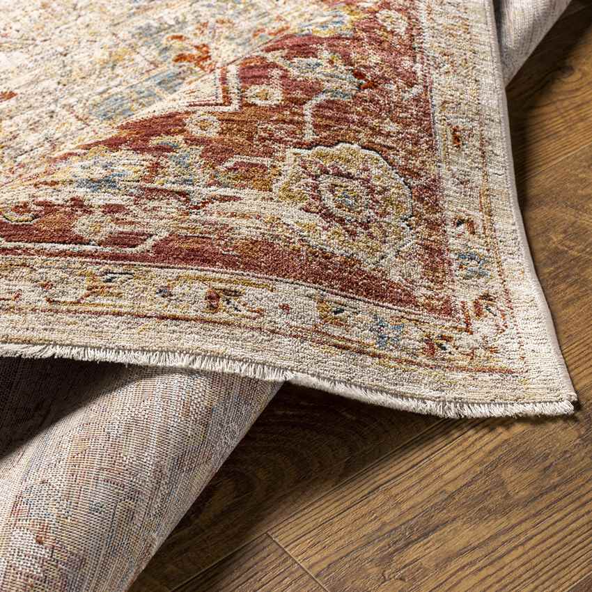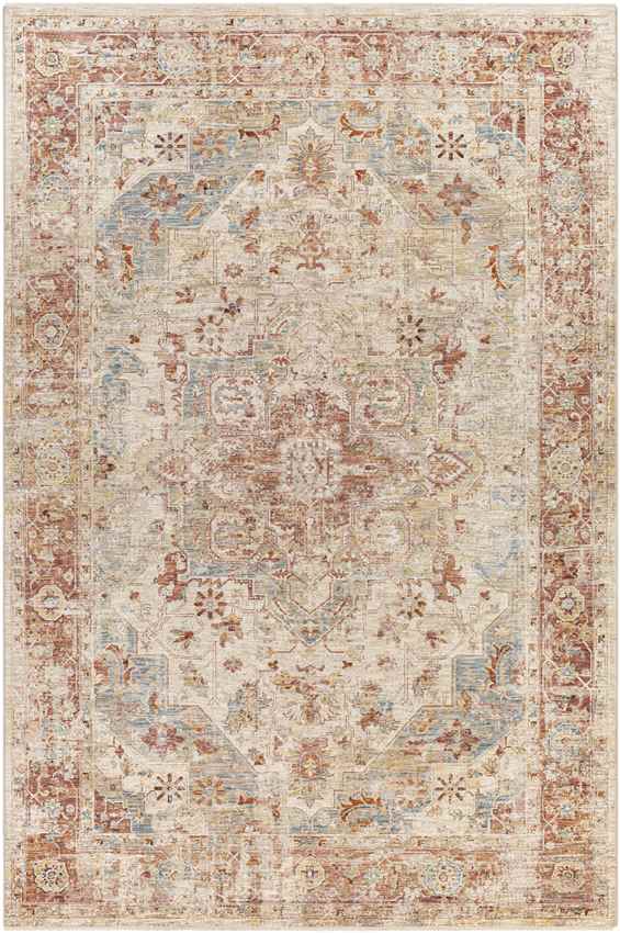 Add charm and warmth to your space with the Harcourt Traditional Rust Area Rug, a beautiful blend of old-world elegance and modern convenience. Featuring a timeless medallion and border pattern, this rug delivers traditional sophistication with a gently distressed finish for a well-loved, vintage-inspired look. The color palette-a rich mix of light gray, rust, medium gray, denim, ice blue, and cream-adds visual depth and versatility, making it the perfect accent for both warm and cool-toned interiors.