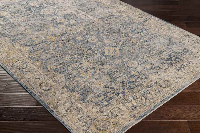 Add sophistication and depth to your home with the Harpers Ferry Traditional Dark Blue Area Rug. Inspired by traditional Persian-style patterns, this rug brings classic elegance into the modern age with a gracefully faded medallion design and a softly distressed finish. The cool, layered palette-dark blue, denim, ice blue, light gray, gray, and charcoal-sets a serene tone while offering enough contrast to complement both light and dark interiors. Whether youre grounding a seating area or layering texture into your design, this rug offers a timeless foundation thats anything but ordinary.