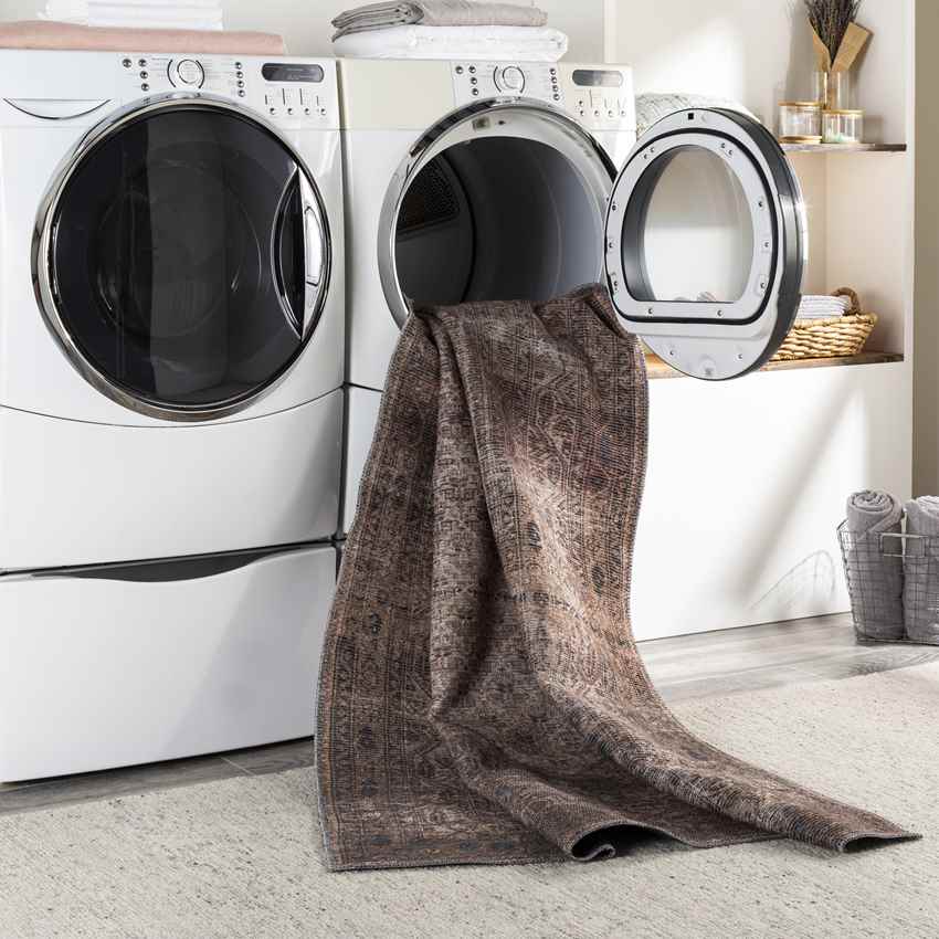 Hayri Traditional Dark Red Washable Area Rug