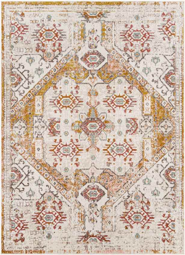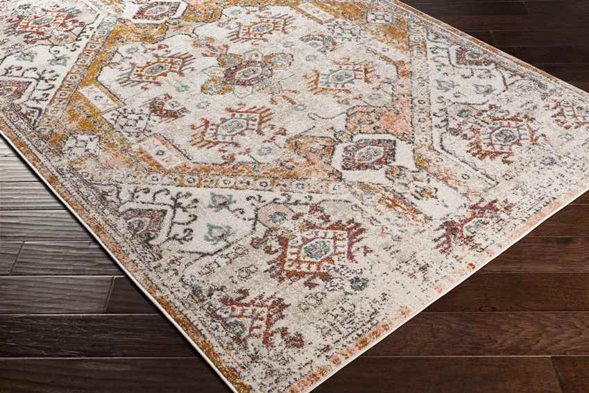 Elevate your home with the Heemskerk Traditional Burnt Orange Area Rug, a striking blend of rich colors and intricate patterns that embody timeless sophistication. Featuring a dynamic color palette of mustard, camel, off-white, dusty pink, sky blue, and light gray, this rug is a perfect addition to any traditionally styled space. Crafted in Turkey with a durable machine-woven construction, it seamlessly balances elegance with everyday practicality.