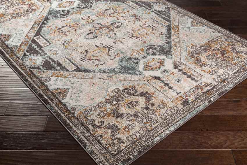 Introduce soft sophistication into your home with the Heemskerk Traditional Pale Pink Area Rug. Showcasing a mesmerizing medallion design framed by ornate borders, this rug combines delicate hues of dusty pink, sky blue, and light gray with bold accents of charcoal and camel. A perfect balance of traditional artistry and modern durability, this rug will elevate any space with its understated elegance.
