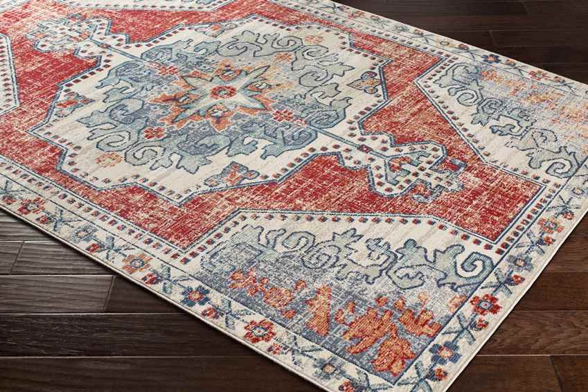 Divine and elegant Henry Traditional Bright Red Area Rug invite positivity and a historic feel into your homes... Old and vintage display artistically performed on an accent piece is a real catch if you are hoping to ornate your home in the chicest way.