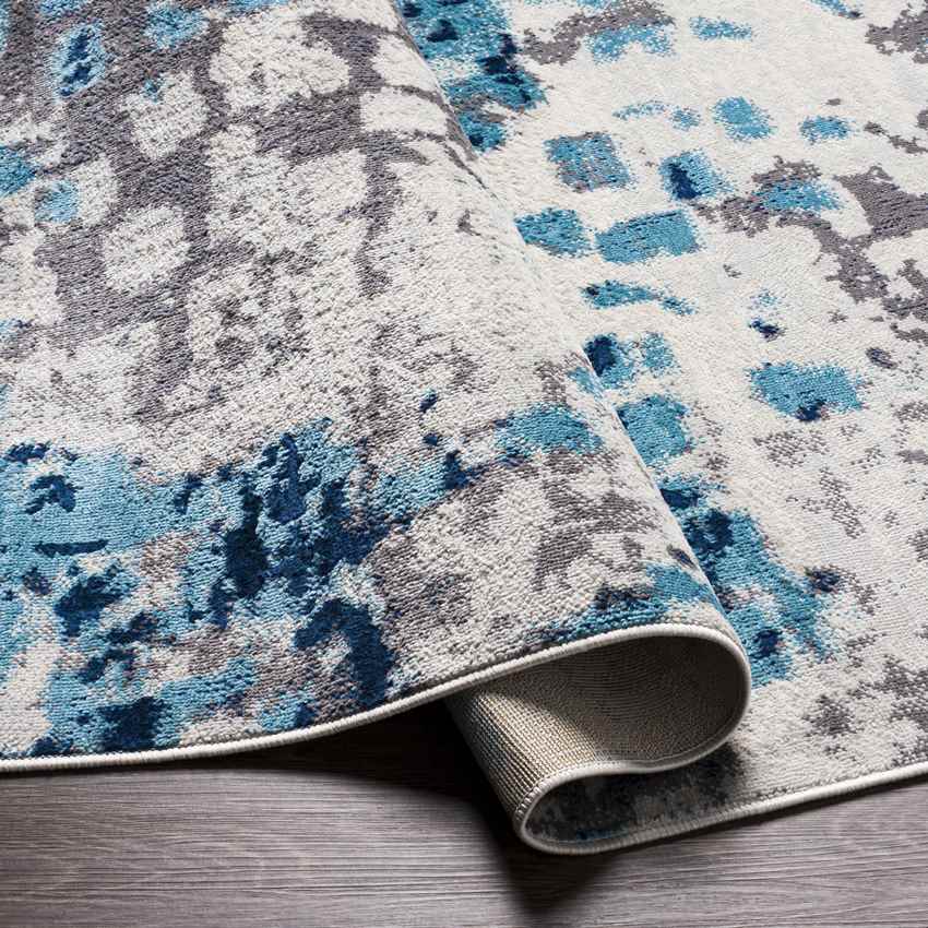 Hooidonk Modern Light Gray Area Rug has tiny patterns whose color is blue, gray, and cream. It combines minimalism and modernity. It is machine woven and has stain resistance. It is ideal for your pets and children.