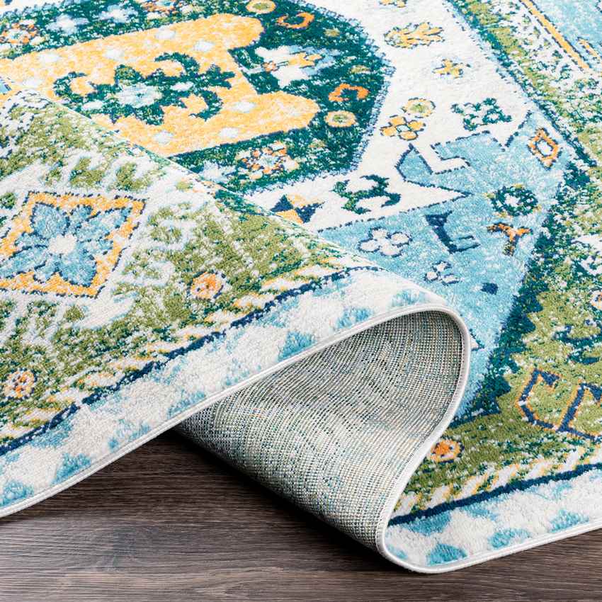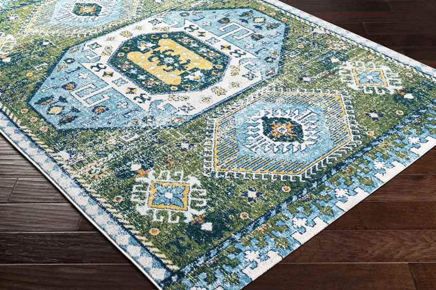 Hulsel Traditional Dark Green Area Rug contains motifs in every corner. These motifs, which are in the form of patterns around the rug, leave their place in various shapes towards the middle. It is easy to clean because of the material it is made of.