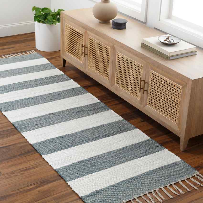 Product Features: Stain Resistant Kid and Pet-Friendly Product Specifications: Colors: White, Denim Material: 100 % Cotton Origin: India Construction: Hand Woven Pile Type: No Pile Please Note: The image we display has the most accurate color possible. Due to differences in computer monitors, we cannot be responsible for variations in...