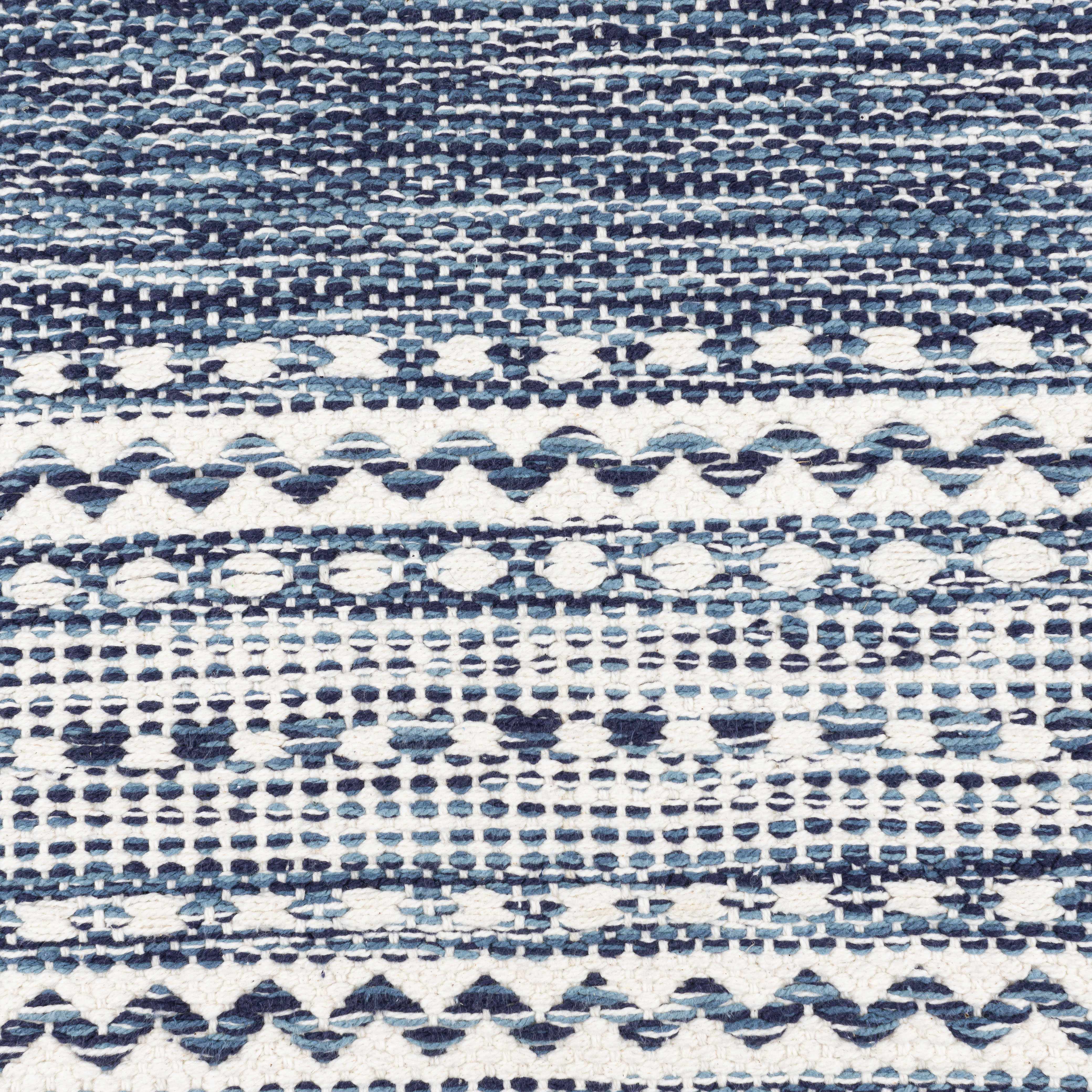 Product Specifications: Colors: Cream, Navy, Bright Blue Material: Front: 100% Cotton, Back: 100% Cotton Origin: India Construction: Hand Woven Style: Cottage Please Note: The image we display has the most accurate color possible. Due to differences in computer monitors, we cannot be responsible for variations in color between the actual...