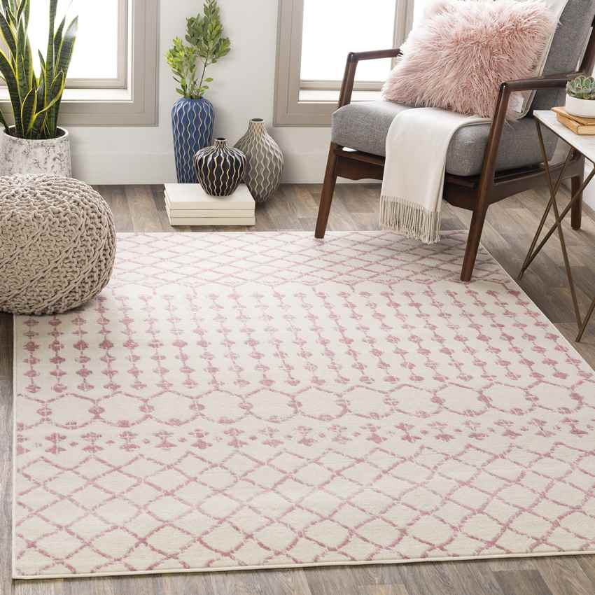 Knutsford Global Pale Pink Area Rug design is beautiful; its delicate and milky pink hues comes with great compatibility you can combine it with any color, from gentle pastel tones to bright and dark shades. The geometric pattern serves as an excellent background for bright or contrasting furnishings, capable of creating an easy, relaxed atmosphere, which at the same time looks luxurious and chic. It is machine woven with stain-resistant polypropylene and comes with a Medium Pile, which feels softer and easier to vacuum, making it ideal for high traffic rooms.