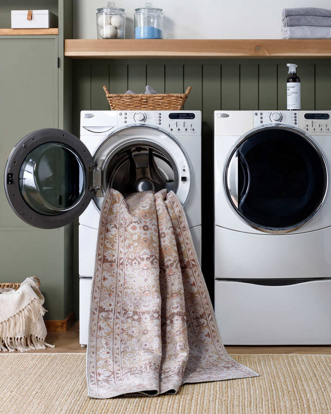 Keeping the Kyna Traditional Light Brown Washable Area Rug looking pristine is easy. Its machine-washable construction allows for simple cleaningjust wash on a cold delicate cycle and line dry. Stain-resistant properties help protect against everyday messes, making it a practical choice for families and pet owners. For added longevity and stability, we recommend pairing it with a rug pad (sold separately).