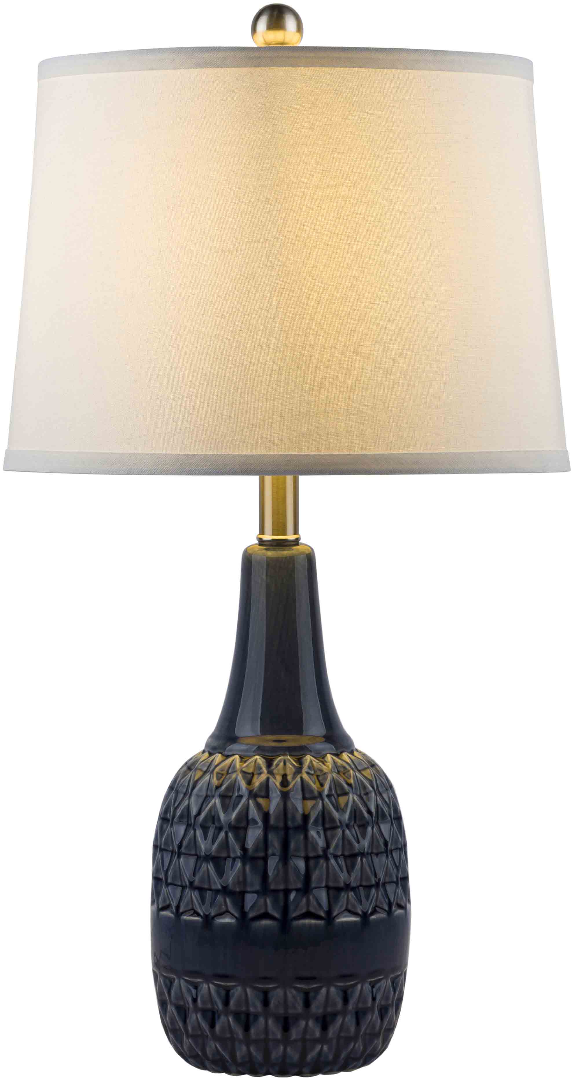 Product Specifications: Material: Linen, Polyester, Ceramic, Iron Made in China Blue Glazed Ceramic Body White Linen Shade Iron Finial Cord Length: 6' Switch Type: 3-Way Number of bulbs: 1 E-26/100 W UL CUL Certified Please Note: The image we display has the most accurate color possible. Due to differences in...