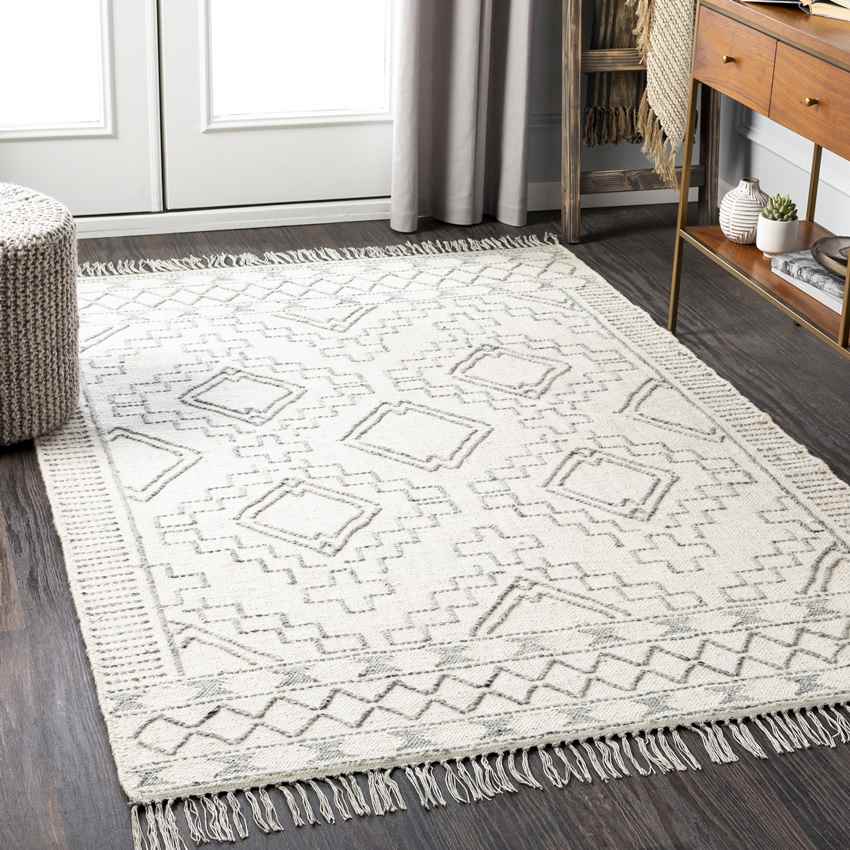 The Lance Global Medium Gray Area Rug was authentically hand woven from India using the finest wool and polyester. Its medium grey tones, thoughtful geometric patterns, and tasteful tassles would fit perfectly for any bohemian space with a tatse for texture. A feature that is quite impressive about this area rug is that despite its light color, it is resistant to stains, which makes it much easier to clean than regular rugs. It is suitable for families with pets or children.