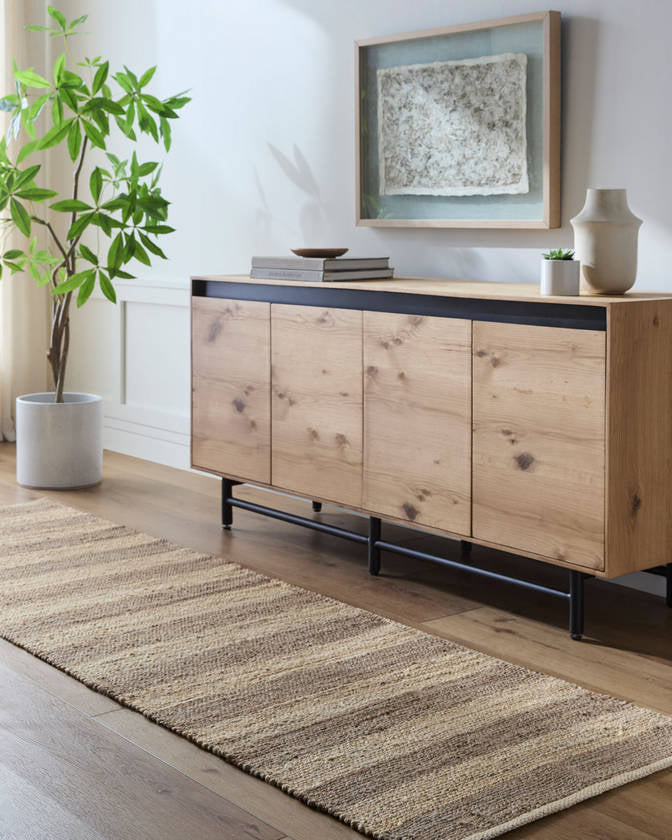The Larraine Modern Light Beige/Brown Area Rug is a testament to the timeless beauty of hand-woven craftsmanship. Each rug is woven with care, resulting in a unique piece that reflects the skill and dedication of the artisans. The 100% jute material offers a natural, durable, and eco-friendly option for your home. Jute's inherent strength makes it ideal for high-traffic areas, while its natural fibers add a touch of rustic elegance