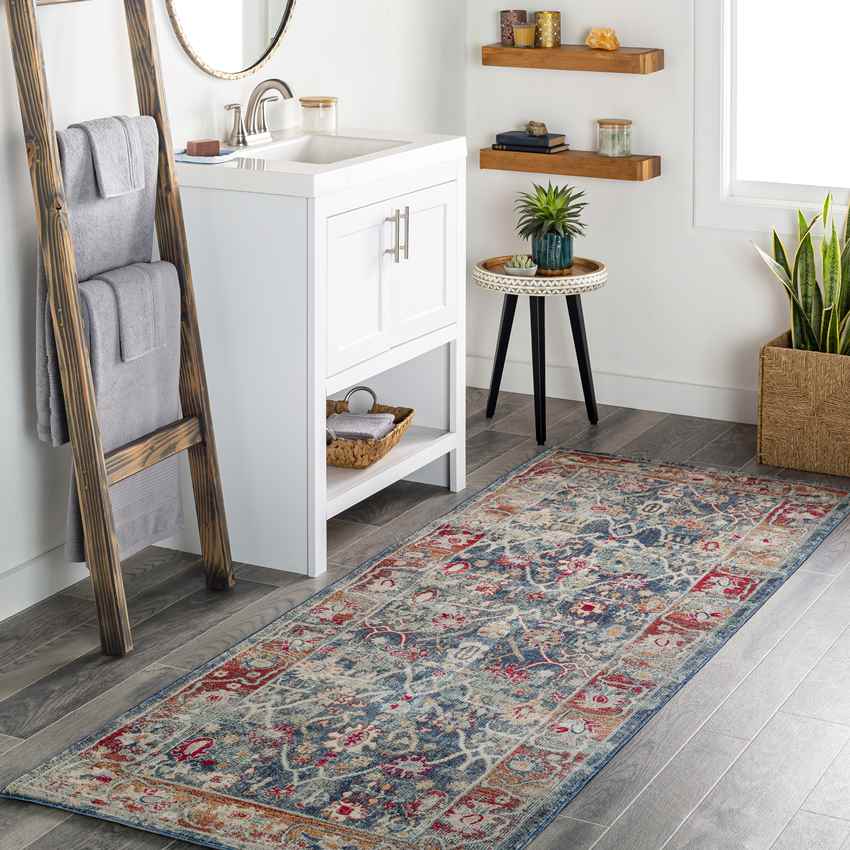 The Le Gosier Updated Traditional Ice BlueArea Rug is absolutely full of life and will surely also breathe life into whatever room it is put in. The print and patterns are so full of movement and whimsy that its almost exciting to look at. The colors are fun but not overwhelming. This eclectic piece will truly make the perfect addition to a space that needs a little more joy in its decor. If youre concerned about keeping your rug clean, you dont have to worry because this rug is resistant to stains and is easy to clean. So, even families with children or pets can enjoy having this rug in their home.