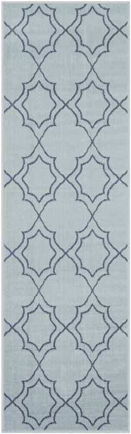 Add a refreshing splash of color and charm to your home with the Liam Cottage Aqua Area Rug. Featuring an intricate geometric pattern in soothing pale blue and navy hues, this rug beautifully balances vibrant style with timeless elegance. Machine-woven in Egypt using 100% durable Olefin, it is designed to withstand high-traffic areas while maintaining its pristine appearance. Whether used indoors or outdoors, this rug is the perfect choice for homeowners seeking beauty and functionality.