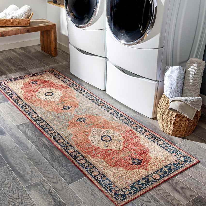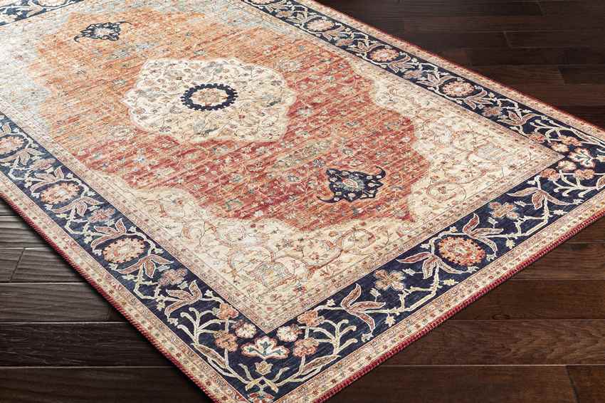 - Colors: Dark Blue, Light Blue, Burnt Orange, Light Beige, Cream