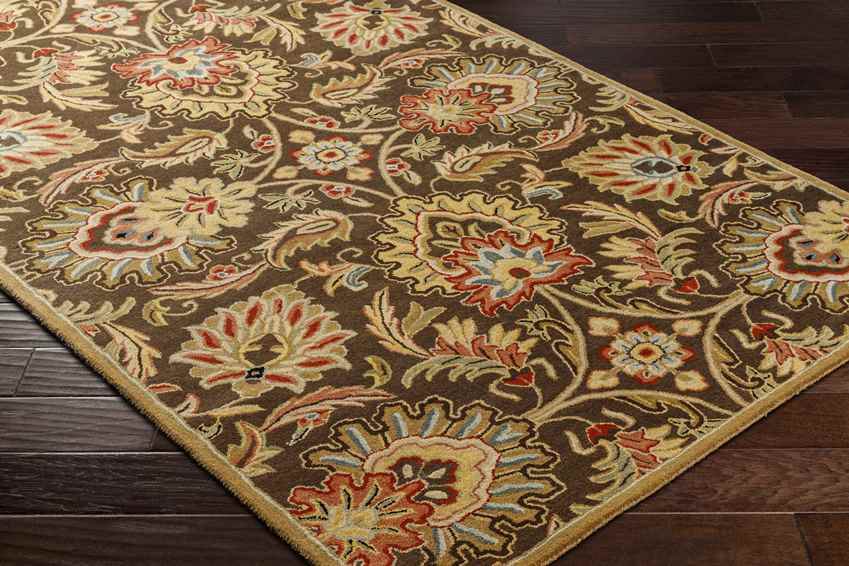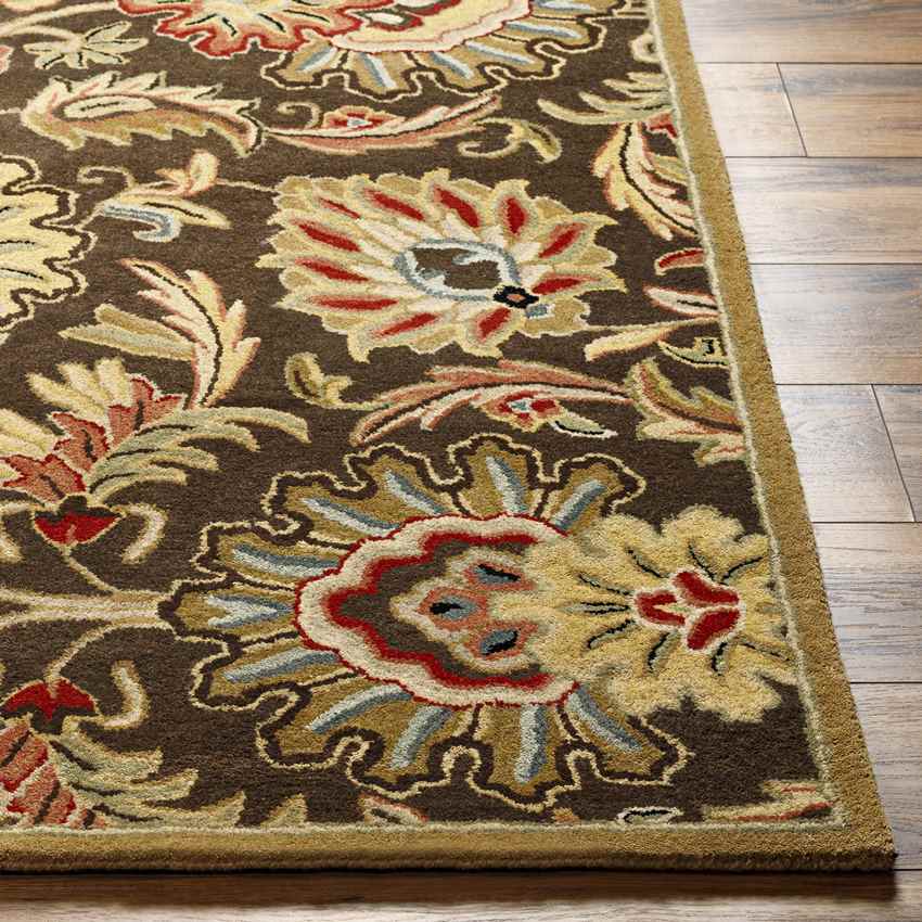 The Lyon Traditional Dark Brown Area Rug is simply enchanting. It has so many beautiful floral details that will surely captivate your eye. The design is so classic and delicate, yet it could still pair perfectly with more contemporarily decorated rooms. The colors are earthy and muted; it will bring so much warmth into any space it is put in. It was made with the utmost care and expert craftsmanship. This rug was tufted by hand in India and made of 100% wool. You can be sure of this rugs amazing quality. If youre concerned about keeping your rug clean, you dont have to worry because this rug is resistant to stains and is easy to clean. So, even families with children or pets can enjoy having this rug in their home.