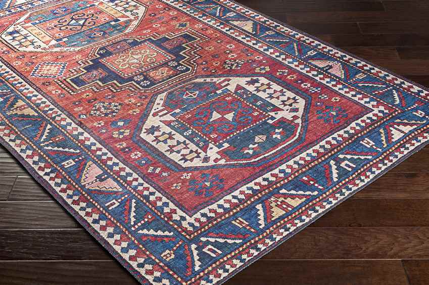 Blending punchy and vibrant hues in an ethnic scene, Mariahout Traditional Burnt Orange, Yellow, Dark Blue, Teal, Light Pink, Oatmeal Area Rug is a magnificent piece brought from unique Eastern inspired auras. Mark & Day never fails to respond to your need for lavish displays.