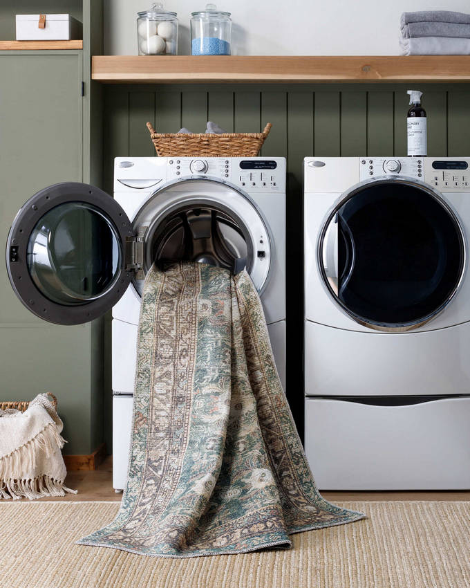 Marqus Traditional Emerald/Light Silver Washable Area Rug