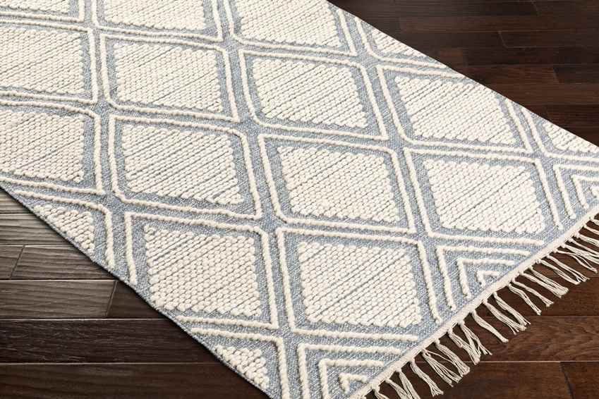 A classic that always maintains its beauty with its appeal driven from geometric figures and a hand loomed construction, Masham Global Denim Area Rug. This 70% cotton & 30% wool area rug is a captivating and effortless piece ready to take control in any spot or room.