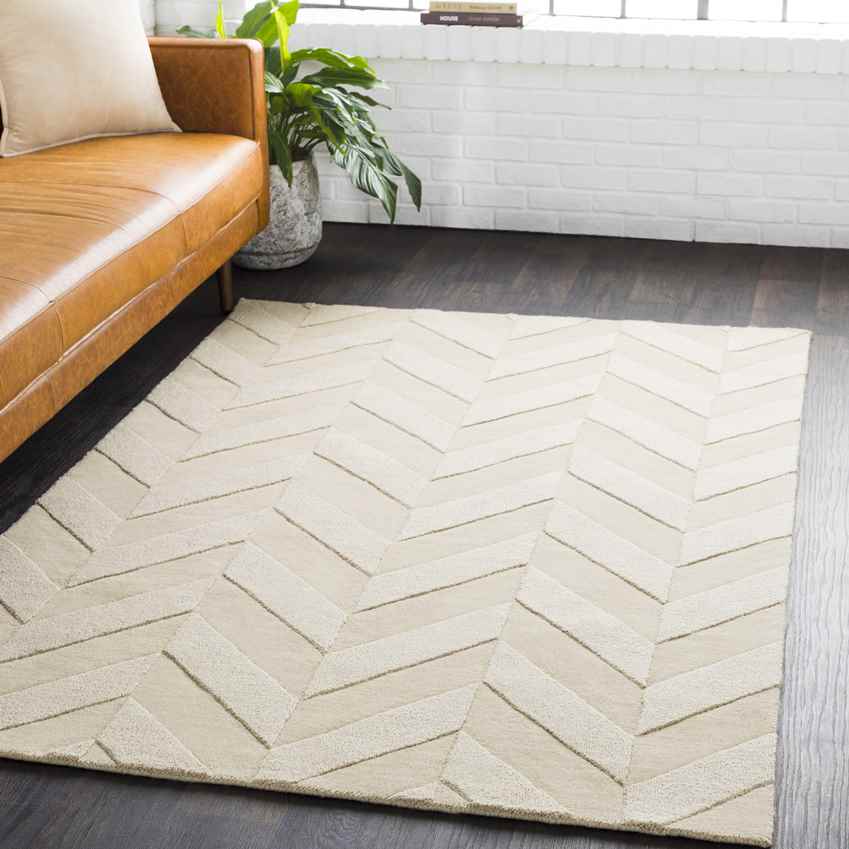 The Menton Modern Khaki Area Rug brings a calming, monochrome elegance to your space. Hand woven in India from 100% wool, this rug features a soothing beige color that complements a variety of interior styles. Its simple yet refined design makes it a versatile piece that fits effortlessly into any room, whether you're enhancing your living room, bedroom, or hallway.