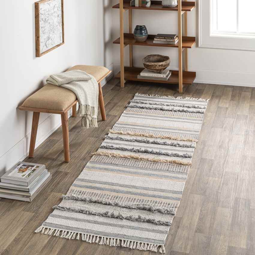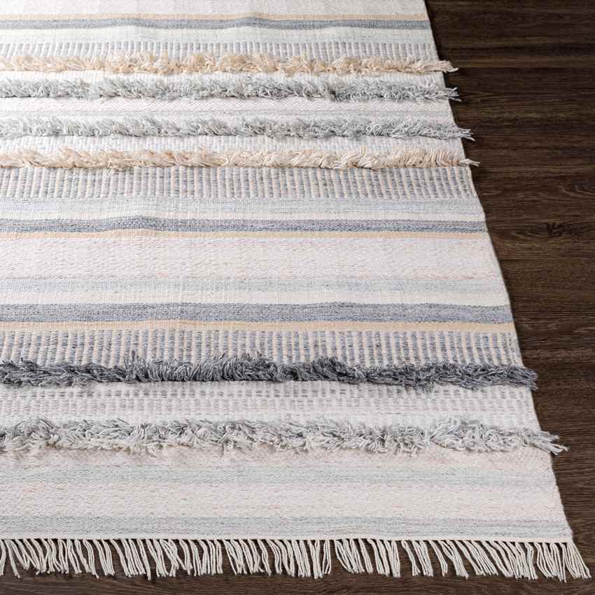 Experience the difference of artisanal quality. Each Mount Auburn Global Light Gray Area Rug is hand-woven in India from 100% PET Yarn, showcasing exceptional craftsmanship and a commitment to sustainable living. The absence of a pile creates a clean, contemporary silhouette that is both visually appealing and incredibly practical. This no-pile construction also prevents shedding, making it an excellent choice for those with allergies. The subtle interplay of light gray with charcoal, light beige, and cream threads adds depth and sophistication, making this rug a versatile anchor for your living room, bedroom, or dining area.