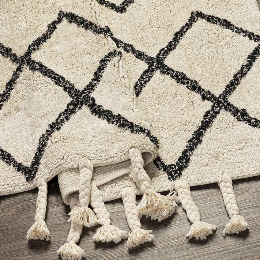 Product Features: Stain Resistant Kid and Pet-Friendly Product Specifications: Colors: Black, Cream Material: 100% Cotton Origin: India Construction: Hand Loomed Pile Type: No Pile Please Note: The image we display has the most accurate color possible. Due to differences in computer monitors, we cannot be responsible for variations in color...