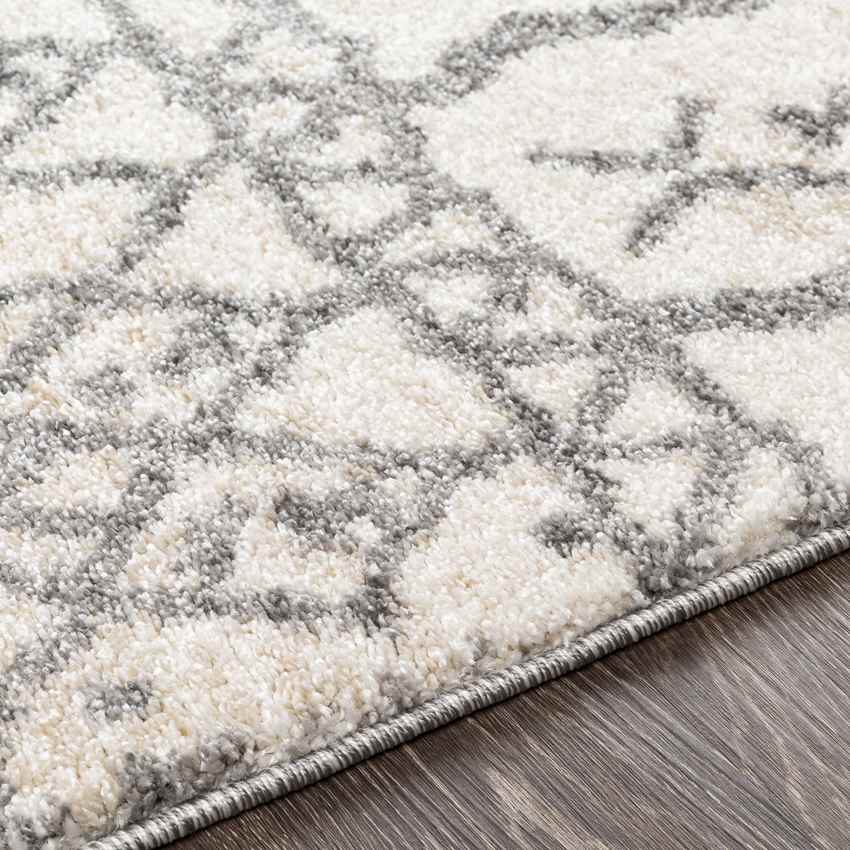 The design of the Oostwoud Global Khaki Area Rug is inspired by global patterns, featuring intricate geometric motifs and a neutral color palette. The interplay of beige, off-white, charcoal, and gray creates a sophisticated and versatile look that complements a wide range of dcor styles. The high pile adds a layer of texture and depth, enhancing the rug's visual appeal and creating a cozy atmosphere.