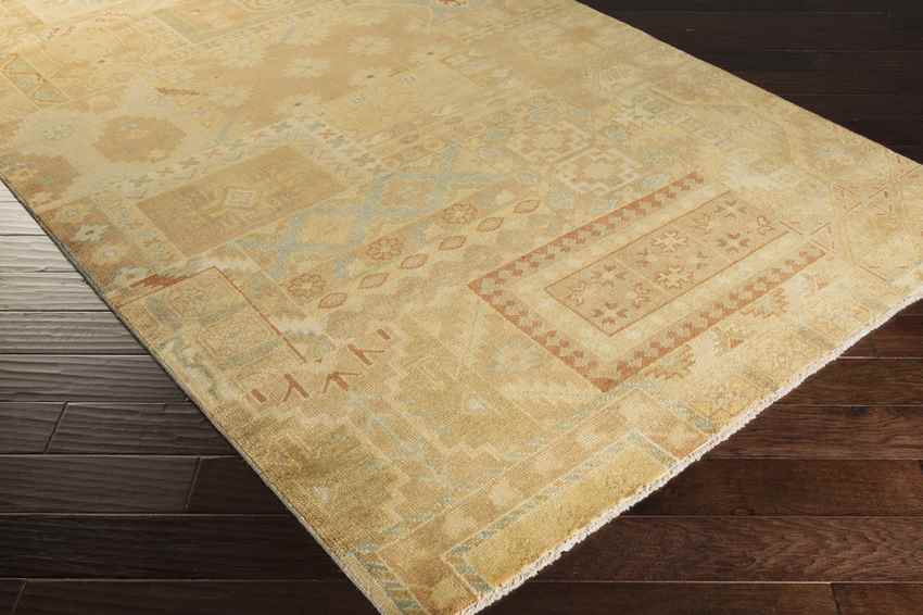 This rugs intricate traditional pattern and rich color palette make it a standout addition to any room. The blend of rust, medium brown, mustard, sage, and light brown tones creates a warm, inviting atmosphere. Its timeless aesthetic seamlessly complements both modern and classic interiors, making it versatile for various spaces, from cozy living rooms to elegant dining areas.